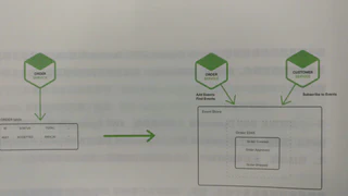当有显著事件发生时某个微服务会发布事件,其他微服务订阅这些事件。 当某一微服务接收到事件就可以更新自己的业务实体,实现更多事件被发布。