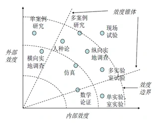 各种研究设计的内部效度和外部效度间的关系如下图所示。